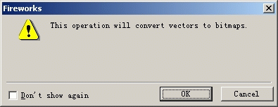 這時彈出了警告對話框,說明該濾鏡將會把矢量圖轉化成位圖,這點和fw4的xtras是一樣的。