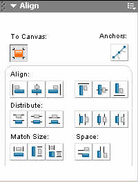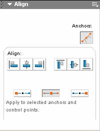 algin面板:還記得fw4裡我們怎麼將一個對象按畫布大小居中嗎?有兩個辦法,一個是使用commands插件,另一個就是畫一個和畫布大小相同的矩形做參照物。現在不用這麼麻煩了,algin面板中就有直接對應畫布對齊的功能。另外還有一個意想不到的絕好功能:貝塞爾點對齊。