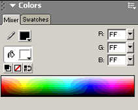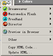 編輯區和fw4也幾乎沒什麼分別,到是右上角的fw圖標有點顯眼,點擊一看,原來是和其他的mx系列軟件結合的更加的緊密了。可以直接將fwmx裡的文件直接導入到dwmx、Flashmx甚至freehandmx等軟件中去。果然是mx的時代,就如同使用同一個軟件一樣。
