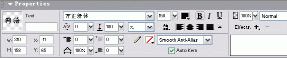 用鼠標在畫布上單擊後,輸入文字“網絡”。在工作區域下方的PropertIEs面板上選擇填充色為黑色,字體為舒體,文字大小為150(如圖2)。