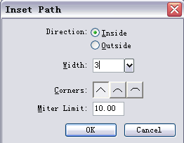使用菜單命令Modify-Alert Path-Inset Path,打開Insert Path面板,如圖進行設置後點擊OK按鈕(如圖5)。