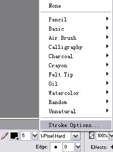 在工作區域下方的PropertIEs面板上設置邊框色為黑色,點擊筆觸類型的下拉框,在下拉菜單中選擇Stroke Options...(如圖6)。