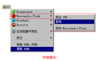 在這裡我們可以看到,Fireworks MX為更多的軟件提供了接口,以彌補其它軟件在圖形制作或處理上的不足。下面我們就仔細看看Fireworks MX和Flash MX之間的珠聯璧合吧!