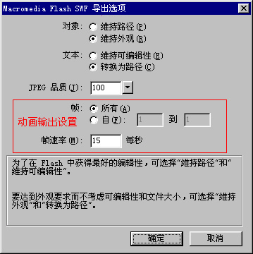 ,選擇 Micromedia Flash/導出SWF,出現設置面板(下圖)。