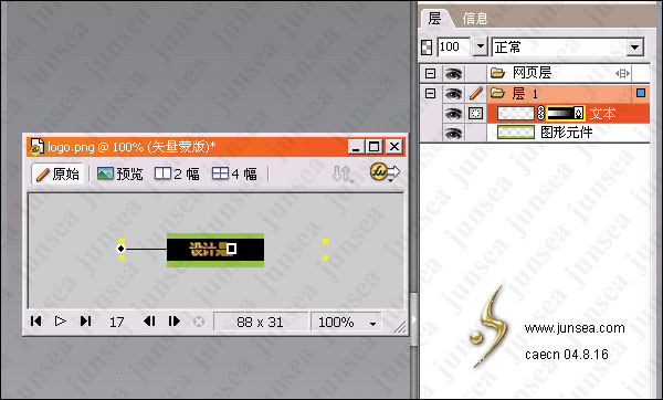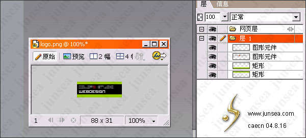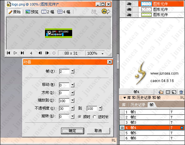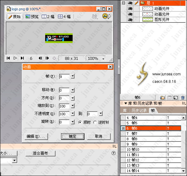 本例主要針對一個LOGO的漸隱效果做出仔細講解 本例涵蓋了FW所有的主要動畫技巧 對初學者來說可能有點難,但只要仔細揣摩,那麼用fw做gif就可以完全掌握