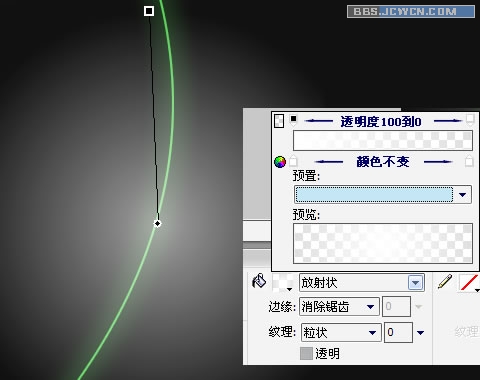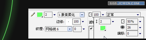 先新建一條綠色的彎曲路徑,選擇發光濾鏡,設置如圖:
