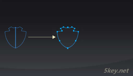 1. 先用Fireworks的鋼筆繪制盾形路徑,只需要畫一半即可。