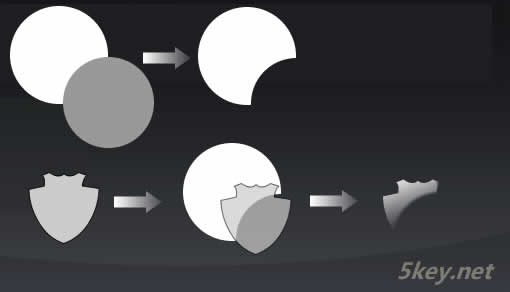 7.(此處一步是小編加進去)通過路徑組合打孔得到月牙形,然後和開始畫的盾的路徑組合為蒙板,然後再進行線性漸變,得到高光部分。
