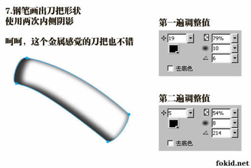 7. 鋼筆畫出刀把形狀,使用兩次內側陰影。