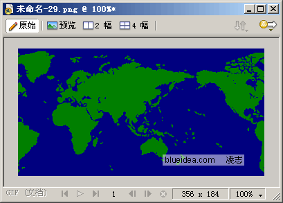3、進入Fireworks,新建文件,粘貼。粘貼後利用裁剪工具將世界地圖部分裁剪下來,裁剪時一定要放大比例進行裁剪,精確一些。