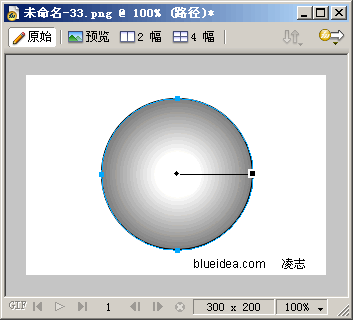 6、新建文件,300*200PX,繪制一個合適大小的正圓,筆觸選擇無,白色填充。