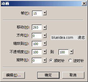 16、設置動畫的幀數,移動方向,還有移動距離。因為地圖素材要向右側移動(地球自西向東旋轉嘛),所以教程中填寫的數值是0。因為地圖素材被我們拼接成了兩張,旋轉一周也就是移動一整張地圖素材的寬度,或者說是縮放後的地圖素材的一半寬度,在步驟13中,我們記下了地圖素材在縮放後的寬度586PX,將此寬度除以2,得到結果293PX(大家要根據自己記下的寬度為主算其數值),將293數值填入移動距離項目中。