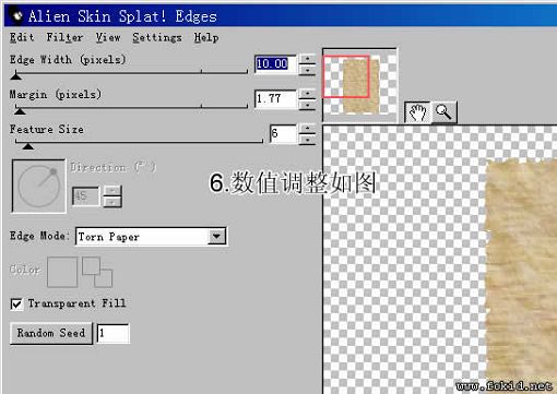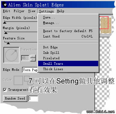 5、使用FW自帶濾鏡AlIEn Skin Splat LE --> Edges 制作撕紙邊緣效果。