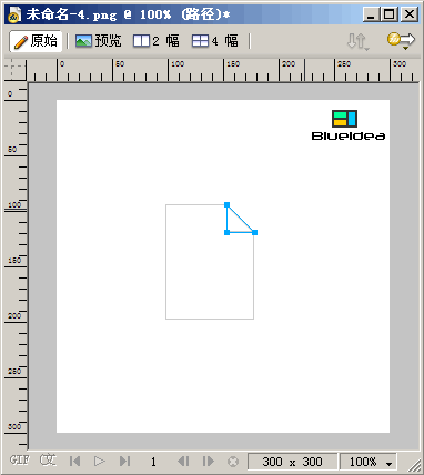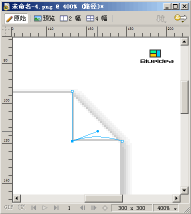 8、放大畫布比例,選擇子選取工具(白箭頭),首先點擊卷角部分左下角的節點,松開鼠標,按住ALT鍵後用子選取工具拖動此節點,控制好手柄,使卷角部分底邊變成弧形曲線。