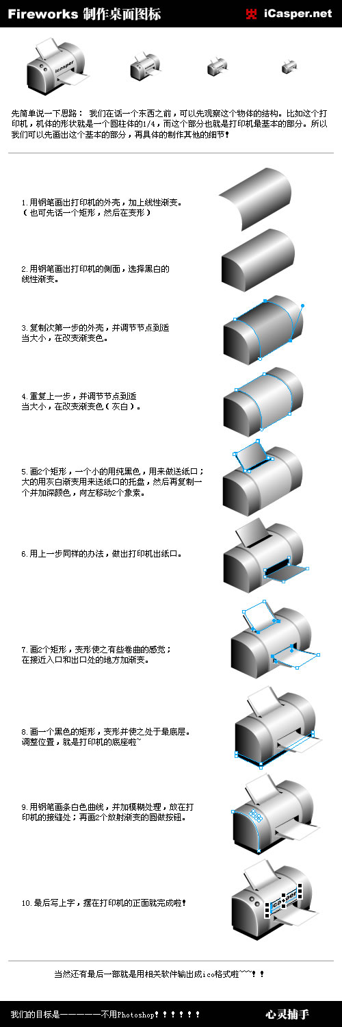 DIV+CSS佈局教程網 >> 網頁製作工具 >> Fireworks入門知識 >> Fireworks基礎 >> Fireworks教程:繪制精致打印機圖標