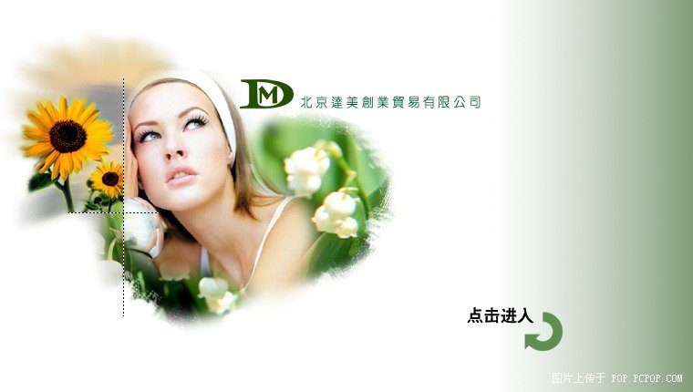 這裡主要介紹的是Fireworks 8的位圖工具的使用,如果你用過ps的話,會感覺這兩個軟件在位圖處理中有很多相似的地方,本例是一個以女性化妝品為主打產品的企業宣傳網站“北京達美”的形象頁面效果圖設計。達美公司一直致力於結合科技和自然的化妝品產品的研發。由於達美公司主打自然健康的產品理念,因此在整體的頁面設計中以綠色為主要的風格,同時配以女性模特、植物和蝴蝶的素材來體現清新、自然的感覺。如圖1.1所示。