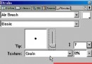 1.新建文件width=300,height=300,這裡我們把背景色設為金黃色 2.在編輯區用矩形工具拖畫出一個矩形,填充色為黑色.打開storke面板,設置如圖(