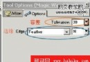 有時在用魔術棒工具做選區的時候,往往不盡如人意,看上去明明色彩有很大區別的地方也被選中了。不急,魔術棒裡有個屬性叫“容差”。 “容差”表示用魔術棒單擊一個象素時所選的顏