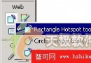 (2)點擊工具箱上的熱點工具,我們會看見如圖3所示的三類熱區工具,Rectangle Hotspot tool“矩形熱點”工具、Circle Hotspot tool