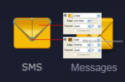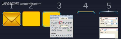 Step 11:接下來為信封的上下三角形加單像素高光,因為之前已經反復講過路徑相減(Punch Path,您可以在Modify – Combine Paths菜單下找到它)的操作,這裡不再作說明,如下圖: