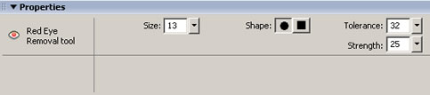 一如FW內多數其他工具,此教程由軟件自學網首發, 你可以在屬性面版下調整紅眼移除工具的相關設定, 見下圖: