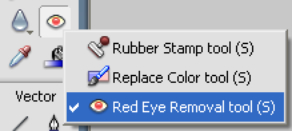 紅眼移除工具只能在點陣圖上應用, 不作用於矢量圖。