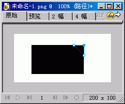 1. 先在Fireworks中新建一個寬為150像素,高為100像素的文件,背景色任意。 2. 選中工具面板中的矩形工具,此教程由軟件自學網首發,在編輯區畫一個矩形。 3. 選擇工具面板矢量部分的“刀子工具”,並且按住Shift鍵,把矩形右上角的邊框進行切割。