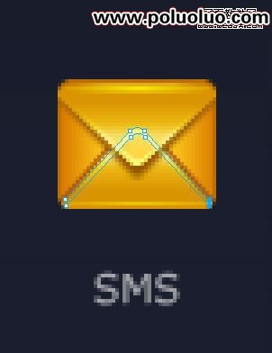 用白色箭頭選中途中所示那些節點,然後用鍵盤的方向鍵往下挪兩個像素,這樣使信封看起來長一點(因為這裡單個圖標不受整體風格約束)。