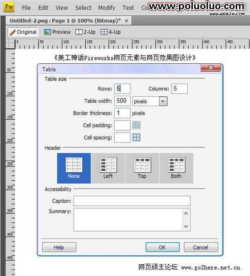 3、支持表格布局,可以使用類似於Dreamweaver的表格工具在Fireworks CS5中直接繪制表格。