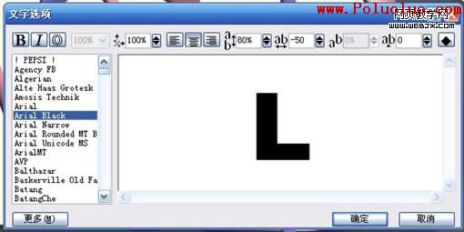 1.按Aa,打入自己需要創作的文字,並設置字體。這裡我輸入了L 字體為Arial Black;