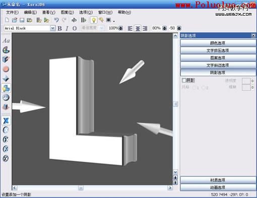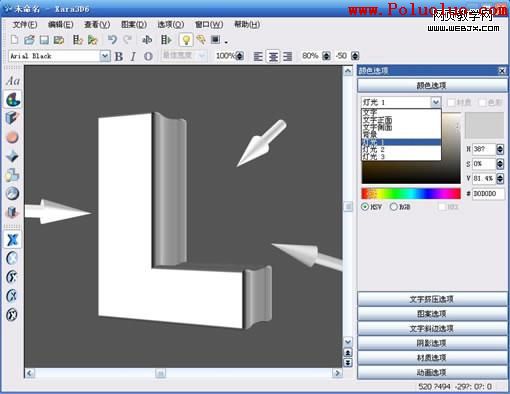 4.調整字體位置和光線角度,注意文字正面和側面色彩對比要大,不然後面上色扣出來就麻煩了。
