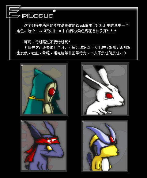 這個教程中所用的圖樣是我做的flash游戲『D.R.』中的其中一個角色。這個flash游戲『D.R.』的部分角色現在首次公開!!!