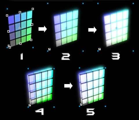 總結:本例使用了Fireworks的各種混合模式和高斯模糊濾鏡營造光影效果,使用”扭曲”工具制造投影效果。