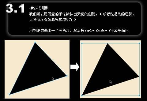 用鋼筆勾勒出一個三角形。然後按ctrl+shift+z將其平面化