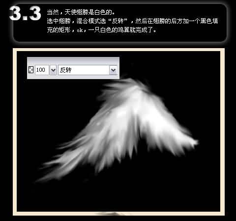 選中翅膀,混合模式選“反轉”,然後在翅膀的後方加一個黑色填充的矩形,ok,一只白色的雞翼就完成了。