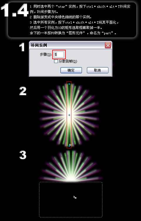1. 同時選中兩個“star”實例,按下ctrl+shift+alt+T補間實例,補間步驟為5。