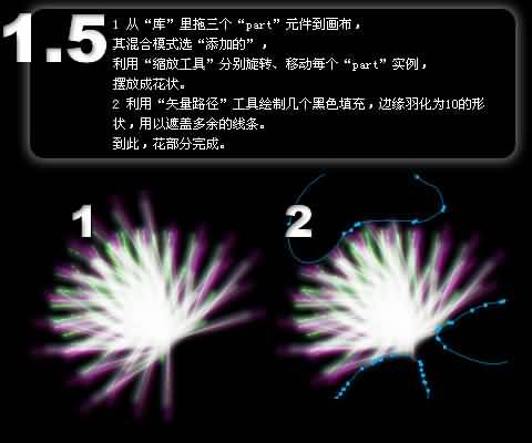 利用“縮放工具”分別旋轉、移動每個“part”實例,擺放成花狀。