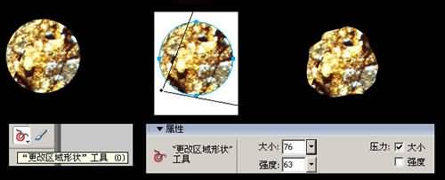 c.選擇[更改區域形狀工具],並根據實際情況調整大小和強度,將圖像變為不規則的隕石形狀。