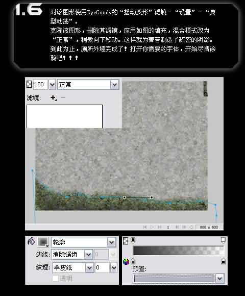1.6 對該圖形使用EyeCandy的“搖動變形”濾鏡-“設置”-“典型動蕩”。