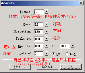 白色滑動條:這裡有兩種制作方法,首先用矩形工具繪制白色的矩形框,不要描邊,調節透明度,這裡就有分歧了,第一種,我們可以定義該矩形框,按F8,選擇Animation,讓他成為一個運動圖符,然後設置他的運動(Modify - Animation - Settings),如圖: