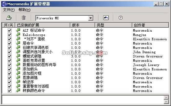圖1 Macromedia擴展管理器