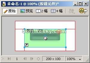 首先,新建一個200×100的文件。選擇“命令”下拉菜單中的“Bitgenius| MacButton”,這樣會跳出創建透明按鈕對話框,如圖6所示。右側部分有兩個選擇“Rectangle”和“Circlebutton”,代表的意思分別是“矩形按鈕”和“圓形按鈕”。這裡選擇創建一個矩形按鈕,並分別設置矩形的大小、位置、圓角度數和顏色,如圖7所示。這樣得到了如圖8所示的矩形,發現它其實是一組組合。