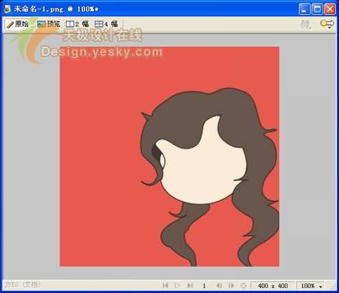 1、首先在Fireworks中新建一個大小為400×400的畫布,在這裡我們將畫布顏色自定義為紅色,如圖1所示。