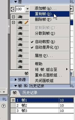 5. 復制第1幀,在第1幀之後,這時創建了第2幀。