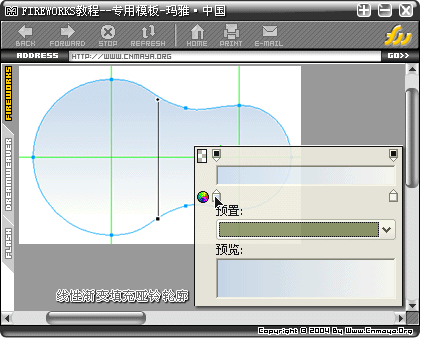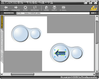 現在不管是Windows Media Player播放器,還是MSN浏覽器,甚至於騰訊的QQ浏覽器都將前進後退的按鈕改成了這種啞鈴形狀,下面我就教給大家如何在Fireworks MX 2004中制作這種簡單的按鈕。