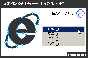 11、全選,選擇菜單“修改|組合路徑|打孔”,得到IE圖標的輪廓路徑。