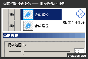 14、CTRL+SHIFT+D克隆當前圖形,取消最上層圖形的“內發光”及“投影”效果設置,選擇菜單“濾鏡|模糊|高斯模糊”,在彈出的設置框中設置模糊參數為“3”。