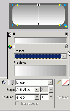 選擇方形,在屬性面板的填充選項中選擇線性漸變,設置好漸變的顏色是從灰色到白色,並調整到以下顯示的樣子。