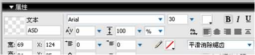 3、在屬性面板中更改文字字型、顏色和字體大小,字體為Arial,顏色選擇白色,字體大小為30如圖: