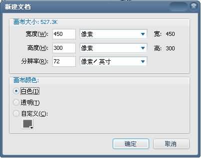 1、打開FW,新建一個空白文檔,寬度450,高度300,分辨率72,畫布顏色選擇白色,如下圖: